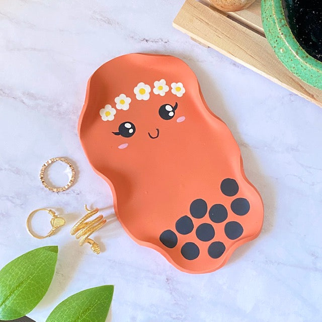 Adorable boba or bubble tea trays with many purposes! They are perfect for holding your keys, jewelry, loose change, & glasses just to name a few for you :)