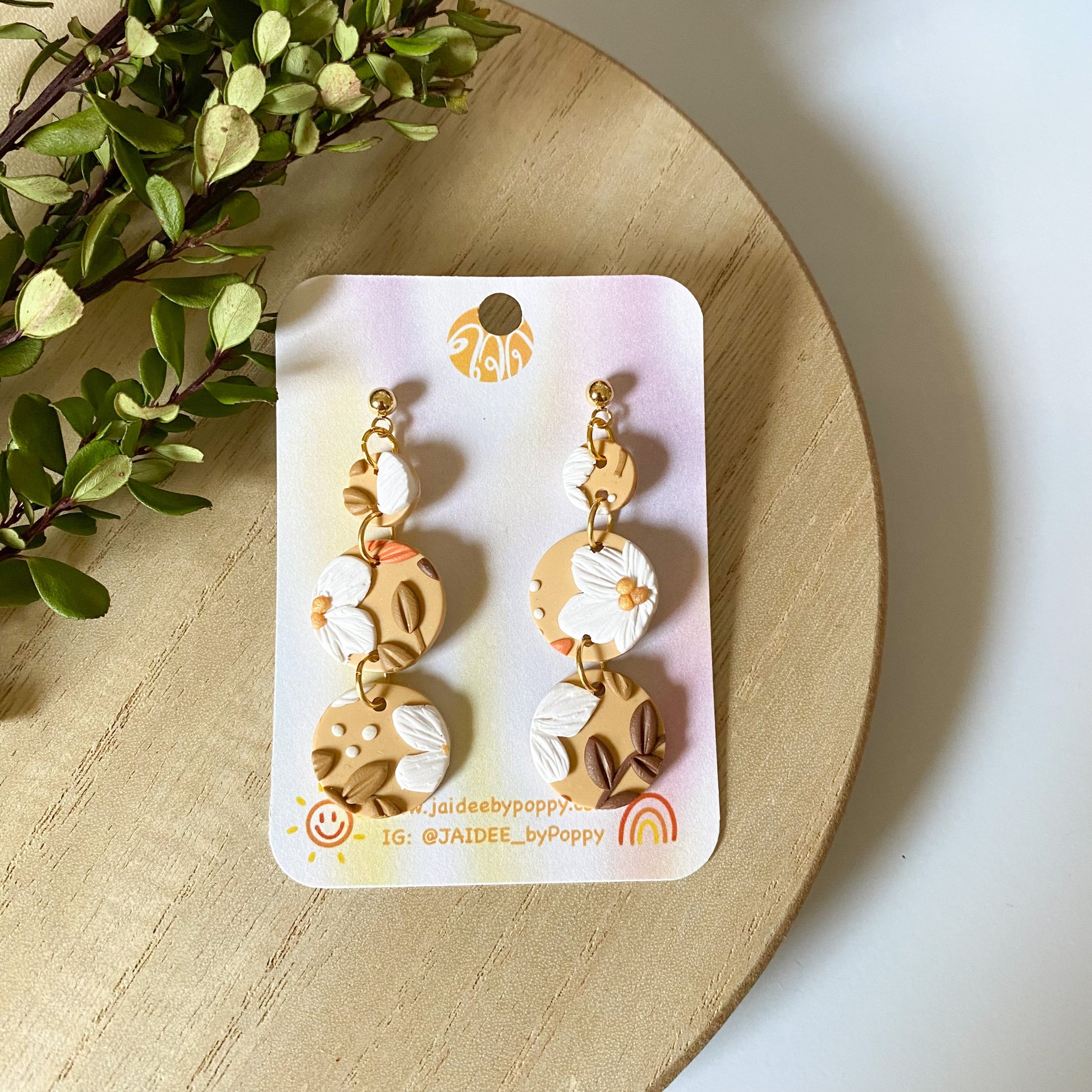 Because our clay jewelry is handcrafted, each item will have slight variations from one another--making each item uniquely yours! They are made with polymer clay combined with stainless steel posts. Very lightweight and suitable for sensitive ears.