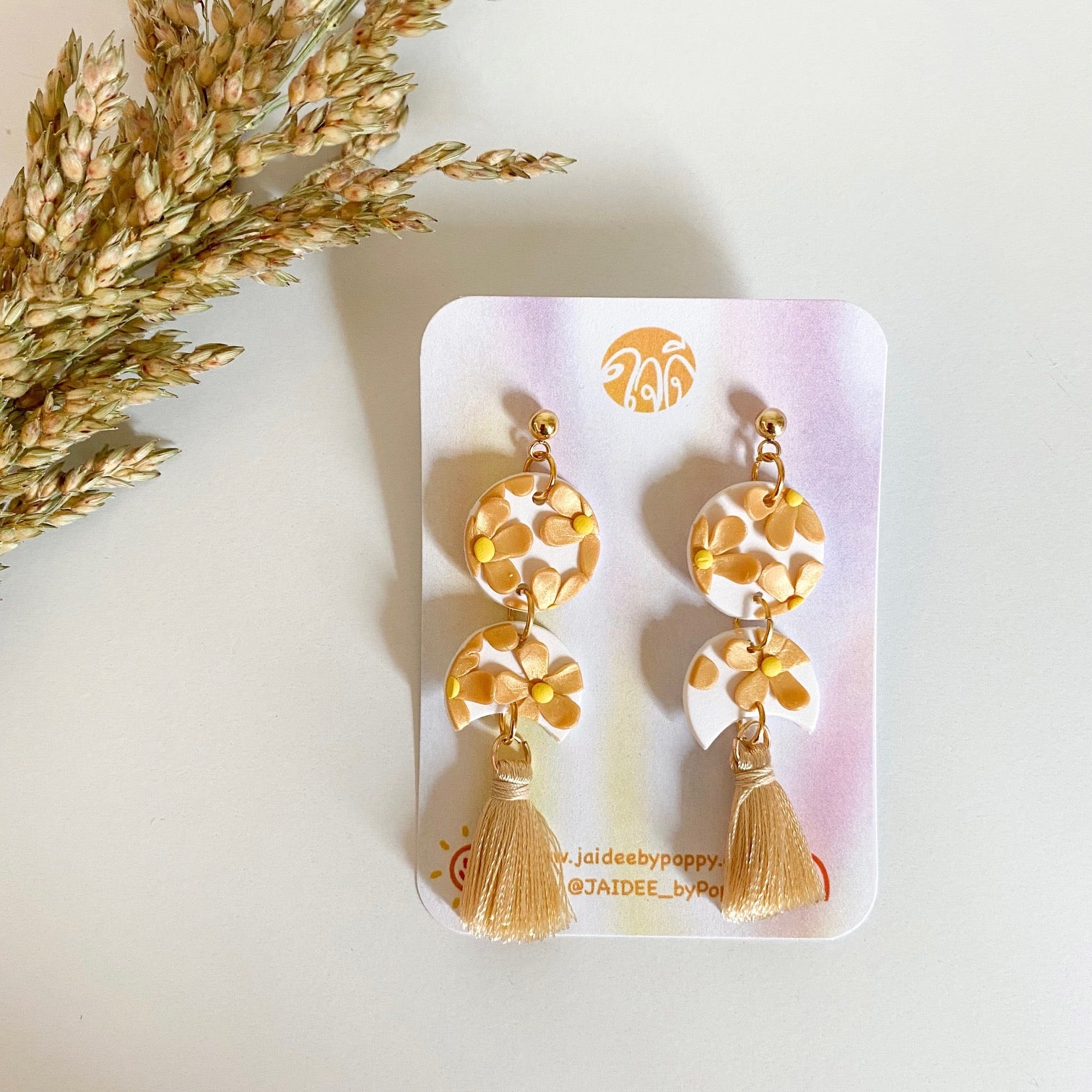 Because our clay jewelry is handcrafted, each item will have slight variations from one another--making each item uniquely yours! They are made with polymer clay combined with stainless steel posts. Very lightweight and suitable for sensitive ears.