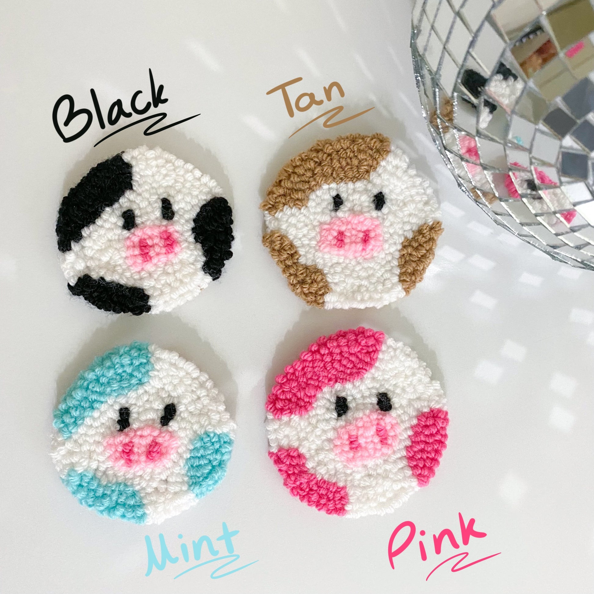 Simply pick a color for your cow and daisy coasters! Your cow buddy will be the same color as your chosen cow coaster.